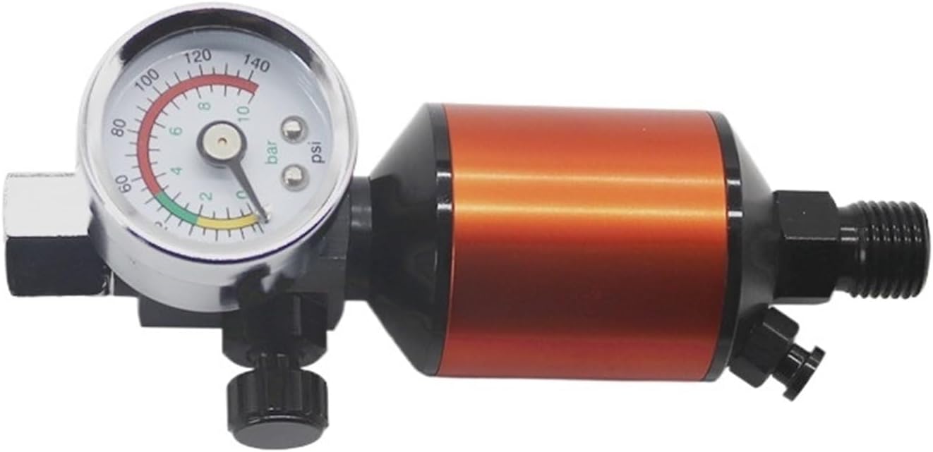 Air FiltersAir Regulator with Air Filter Spray Gun Air Regulator Gauge Air Spray In-Line Water Trap Filter Tools Paint Spray Gun RegulatorAll-aluminum high-pressure explosion-proof is saferspray gun regulator + mini air filter (oil-water separator)Oil-water separatorDirectly for small pneumatic tools air intake filtration moisture in the air.Pressure range: pressure 1-9kg / cm2. The maximum pressureless than9.9kg / cm2Thread Size: male side connection British units 1/4 "The female side can be directly connected to the gunscrew-type inlet connector British units 1/4 "Are threaded connections.Performance: In the case of spraying demanding, high-end gun necessary aids,Fast interfaces directly to the spray gun, ensure that the paint afterpaint atomizing not mixed with any moisture inside.Making higher quality paint spraying.Pneumatic gun regulatorTable adjustable pressure regulator range 0-10BAR (British unit of 0-140PSI)Air inlet thread -1 / 4NPT taper of the thread, the thread connecting the lance -1 / 4NPT internal thread.Can be used with the gun, achieve the display, adjust and control the pressure,It is the best partner upscale gun. Compact, flexible adjustment and light weight