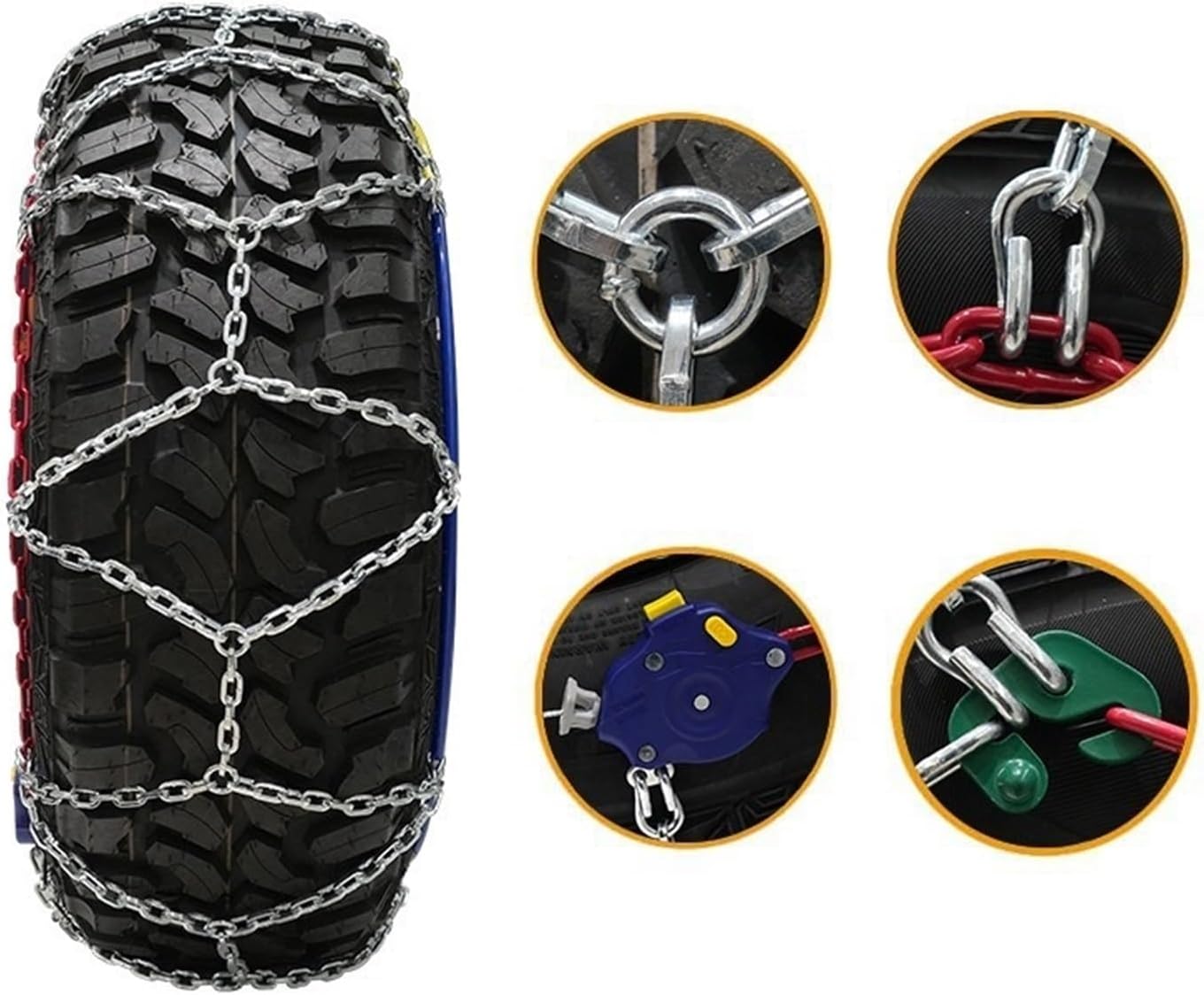 All-terrain snow chains Compatible With off-road applicable to tire models Compatible With 37x12.5R16.5 37x12.5R17 37x12.5R20Product Introduction:1.Product Name:All terrain off-road snow chain2.Material: Alloy steel3.Diameter: 4.5 millimeters.4.Specification: 1 set (Available Compatible With 2 tires)5.Weight: 12kg6.Applicable Tire Model: 37x12.5R16.5,37x12.5R17,37x12.5R207.Installation: Installation is simple without a jack8.Applicable Scope: Off-road SUV, pickup truck and minivan.9.Applicable Ground: Frozen/Snowy/Rainy/Muddy/Sandy, etc.==========Item Weight : 12kgOrigin : Mainland ChinaMaterial : Alloy steelItem Type : snow chainsDear guests, it's a great honor for you to come to my shop.Customer satisfaction is the core of our store. If you have any questions. you can send me an email and reply to you as soon as you see the email! I wish you all a happy life!