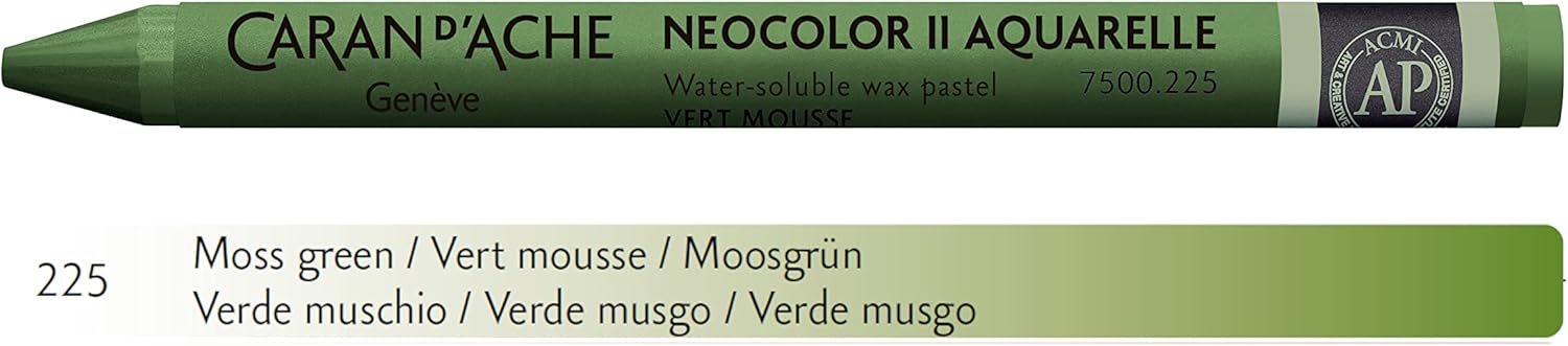 • Caran d'Ache Neocolor II 225 Moss Green / Moss Green (7500.225) / Pastel 10 Pieces (1 Pack)/ Made of Water-soluble Wax / For All Types of Materials Paper Cardboard Glass Wood Leather Fabric Stone