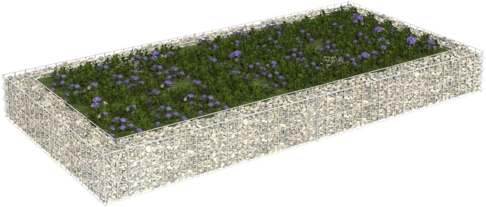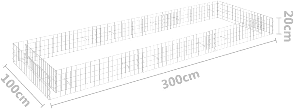 This gabion raised bed allows you to conveniently create a secure yet stylish border for a flower or plant bed in your garden or on your patio.The sturdy gabion is designed to be filled with rocks or gravel. Made of weather-resistant galvanized steel, the gabion is very stable and durable. The transverse and longitudinals welded at every intersection offer extra stability to the gabion planter and also works as a mesh grid.Please note that stones and plants are not included in delivery.Color: SilverMaterial: Galvanized steelOuter dimensions: 118.1" x 39.4" x 7.9" (L x W x H)Inner dimensions: 110.2" x 31.5" x 7.9" (L x W x H)Wall thickness: 3.9"Mesh size: 3.9" x 2" (L x W)Wire diameter: 0.1"High load capacityAssembly required: Yes