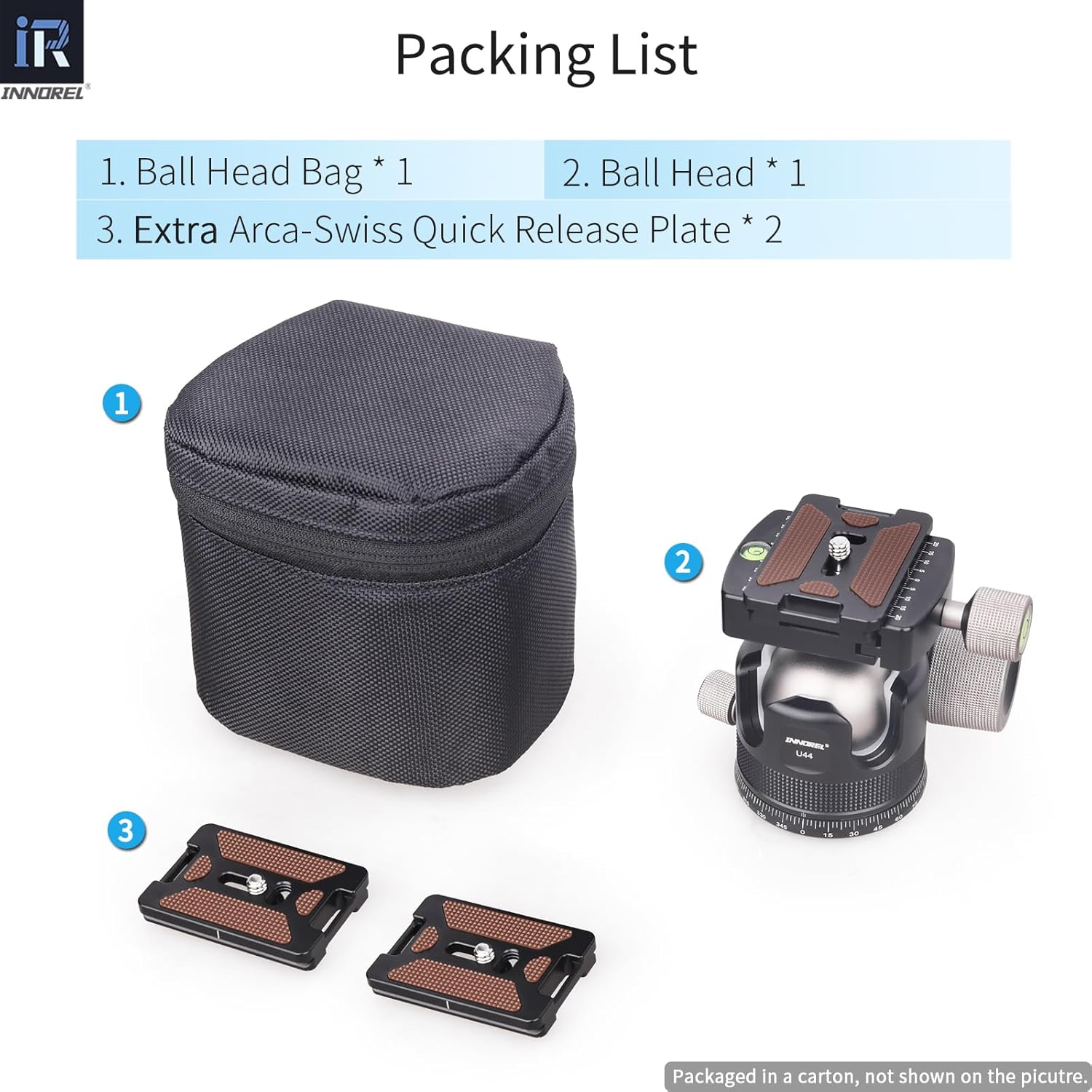 | BuiltIn Media | Ball Head * 1, Ball Head Bag * 1, Extra Arca-Swiss Quick Release Plate * 2 |
