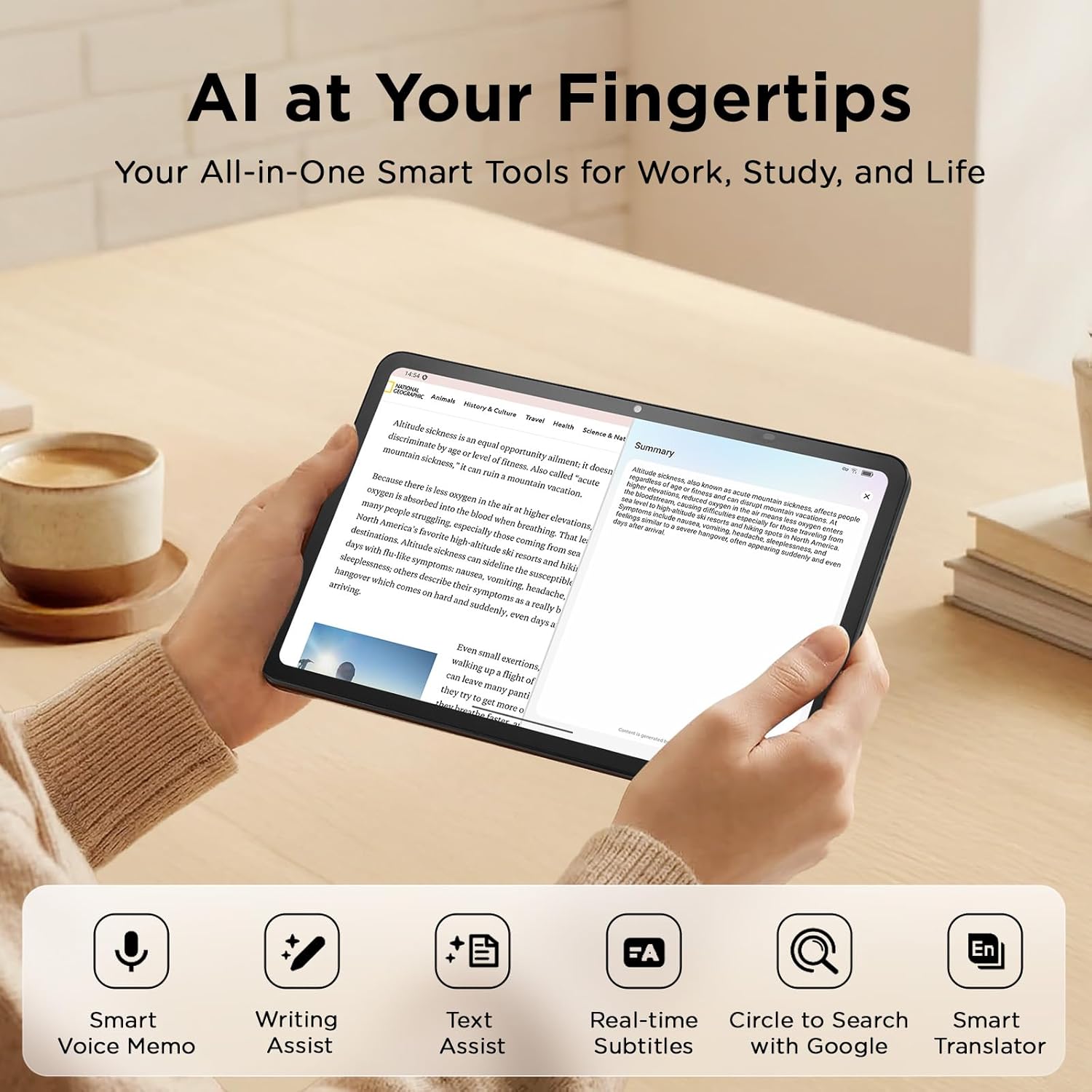 • Built-In AI for Smarter Productivity: From capturing ideas to refining content, the TCL NXTPAPER 11 Gen 2 tablet with pen leverages AI to streamline your workflow. Voice memos, writing and text assistants, real-time subtitles, and smart translation help turn speech into text and bridge communication gaps. With Circle to Search with Google, information is instantly accessible—making everyday work and study faster and more intuitive