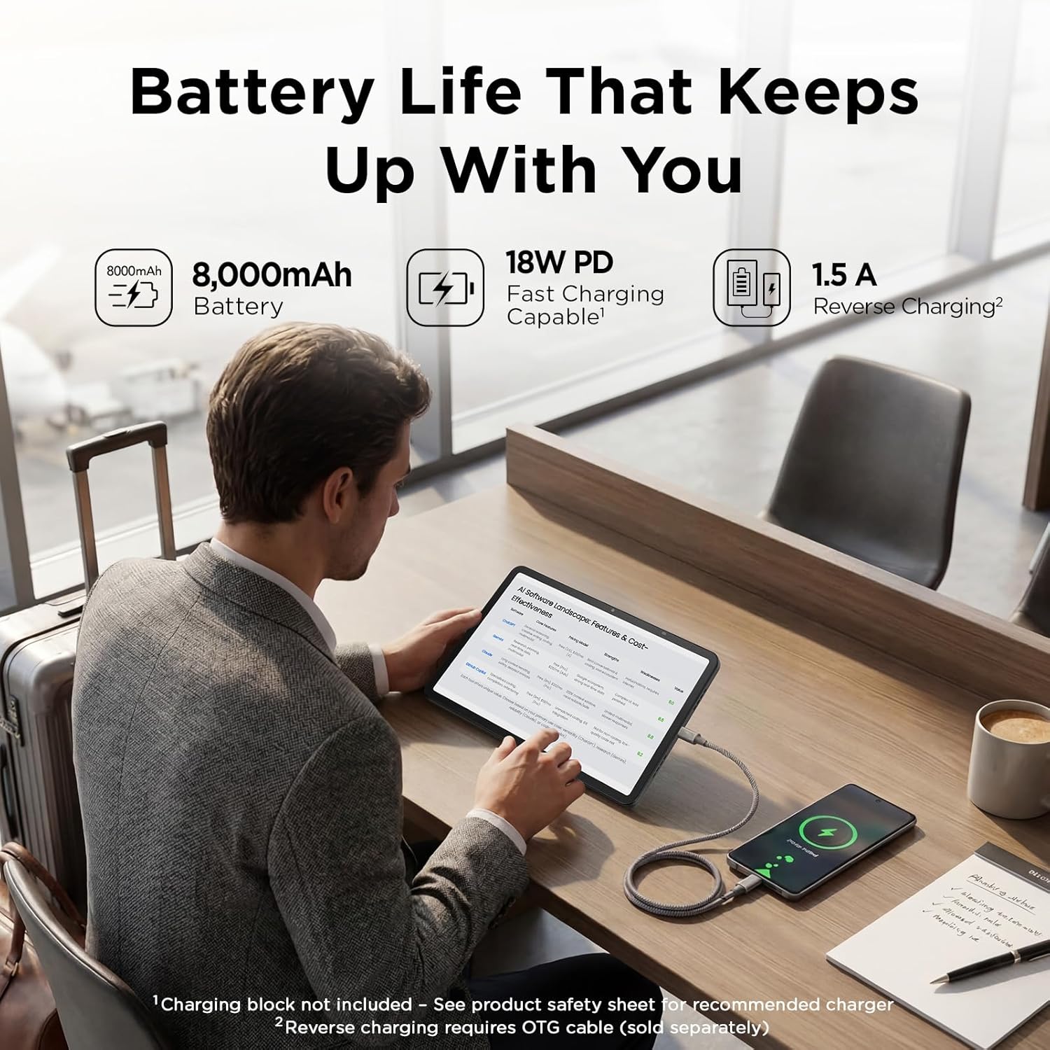 • Long Battery Life with Reverse Charging: The TCL NXTPAPER 11 Gen 2 Android tablet features a powerful 8000mAh battery that easily supports a full day of study, work, and entertainment. With 18W fast charging, you can recharge quickly and spend less time waiting. It also supports reverse charging, allowing you to power phones, earbuds, and other devices when needed