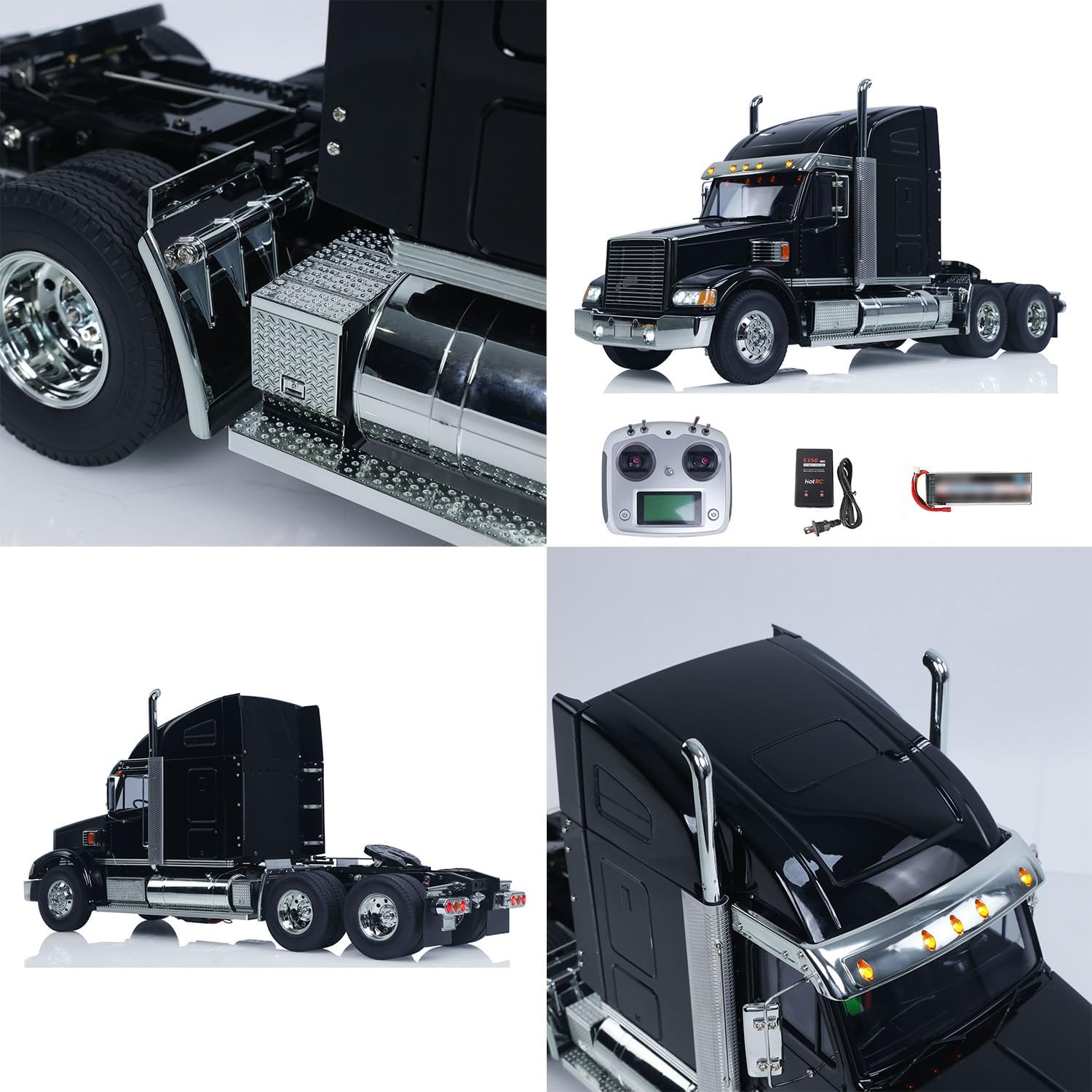 #Customized DIY TAMIYA Knight Hauler 56314 6*4 1/14 RC Tractor Truck Remote Control Lorry Car Model Light Sound I6S Radio Battery #Specification: Manufacturer: TUCAN Item Condition: New,Assembled and Painted Scale: 1/14 Material: Plastic,Metal Body Size: L: 630mm W: 186mm Wheelbase: 476mm Wheel Size: 22*83mm Wheel Track: 156*138mm Gear Ratio: 1st 32.49:1,2nd 17.76:1, 3rd 10.66:1 ID: TMY-56314-KnightHauler-RTR-PAINTING-BK #The package include: 1/14 6X4 RC Tractor Truck Motor ESC Servo Light and Sound System Flysky I6S Radio System Battery Charger