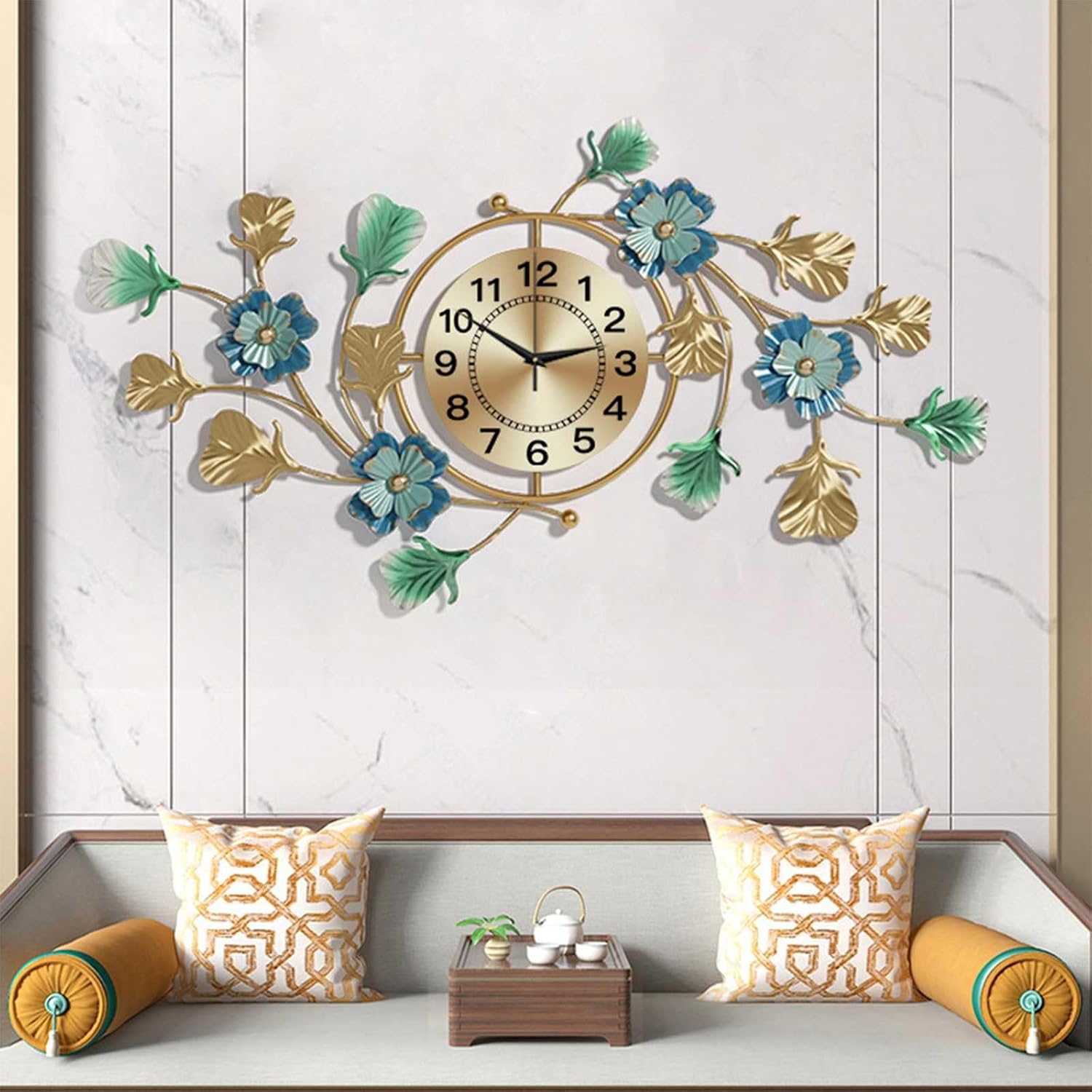 Product Name: Wall Clock Process: Iron forging, firmly welded Style: postmodern, light luxury, minimalist Weight: 1.5KG Product size: 85CM * 50CM clock face 20CM Movement: Self developed silent movement using 1 No. 5 battery Adsorption: adhesive, nails Product packaging: 1 wall clock (battery not included) Kind reminder: Color differences may occur due to different shooting lighting, monitor colors, or different phone brands and manufacturers. Please understand that due to the special nature of manual production, there may be errors within 1-3CM in the finished product, which is within the normal range. The actual product shall prevail.