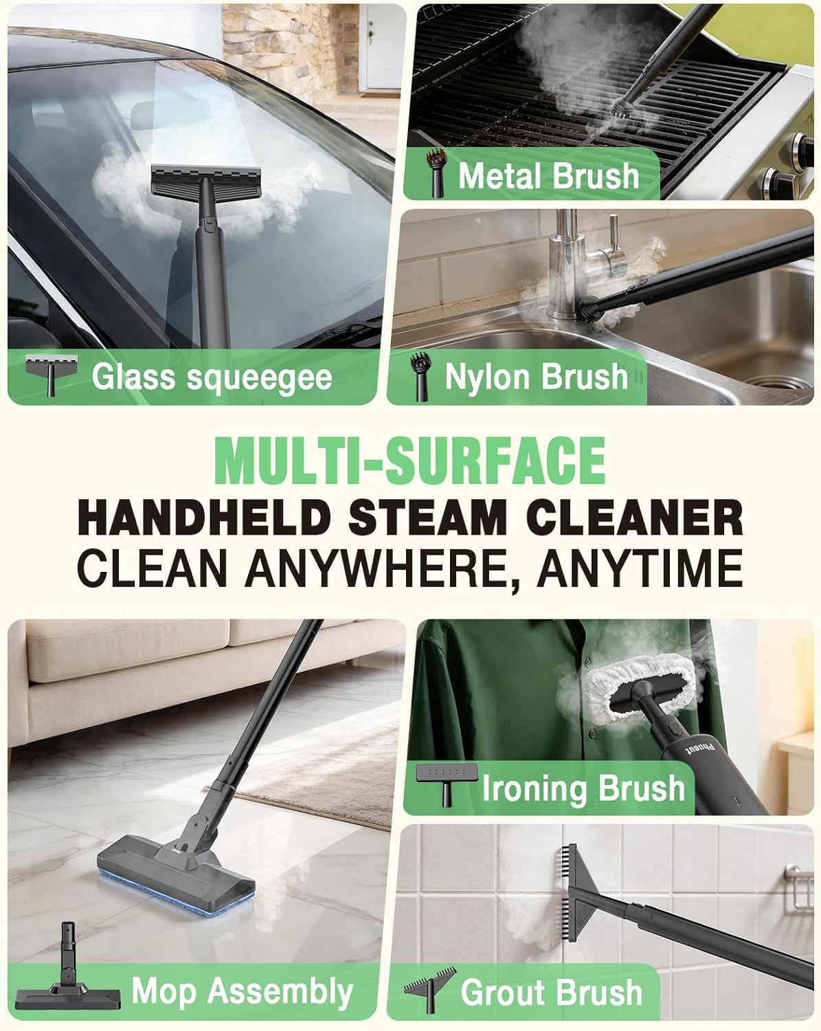 | Surface Recommendation | handheld steam mop cleaner for various floors, car seat, pet bed, stairs, kitchen crevice, college dorm, carpet, and sofa |