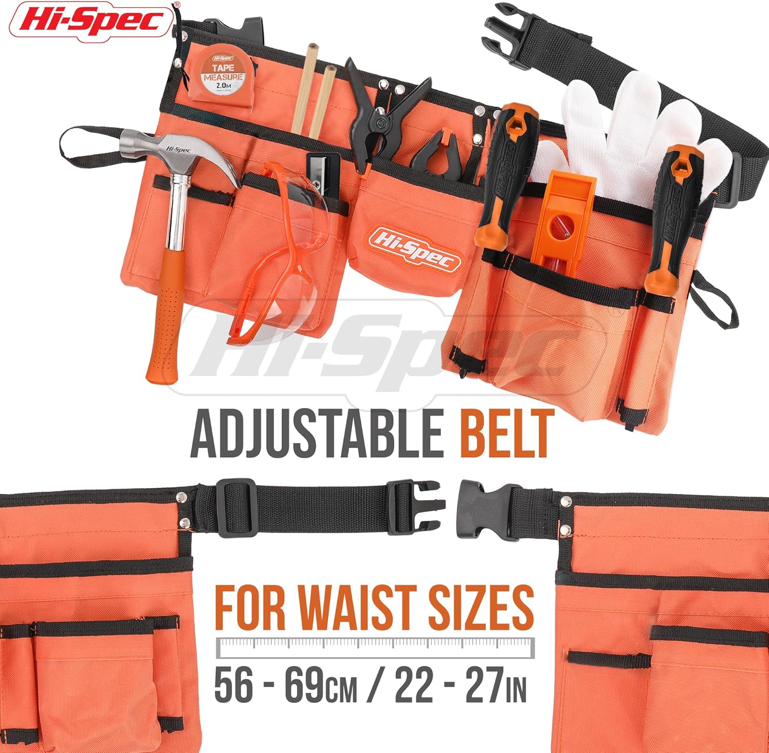 | Included Components | 1 piece kids safety goggle / 1 piece light cotton gloves / 1piece carbiner clip, 1 waist 22"-27" kid tool belt / 14 piece real tools included:, 2m measuring tape / kids plastic level / 2 piece thick carpenter's pencils / 1 piece pencil sharpener/, 4oz kids claw hammer / 2 piece kids screwdrivers / 2 piece mini 3" spring clamps/ |