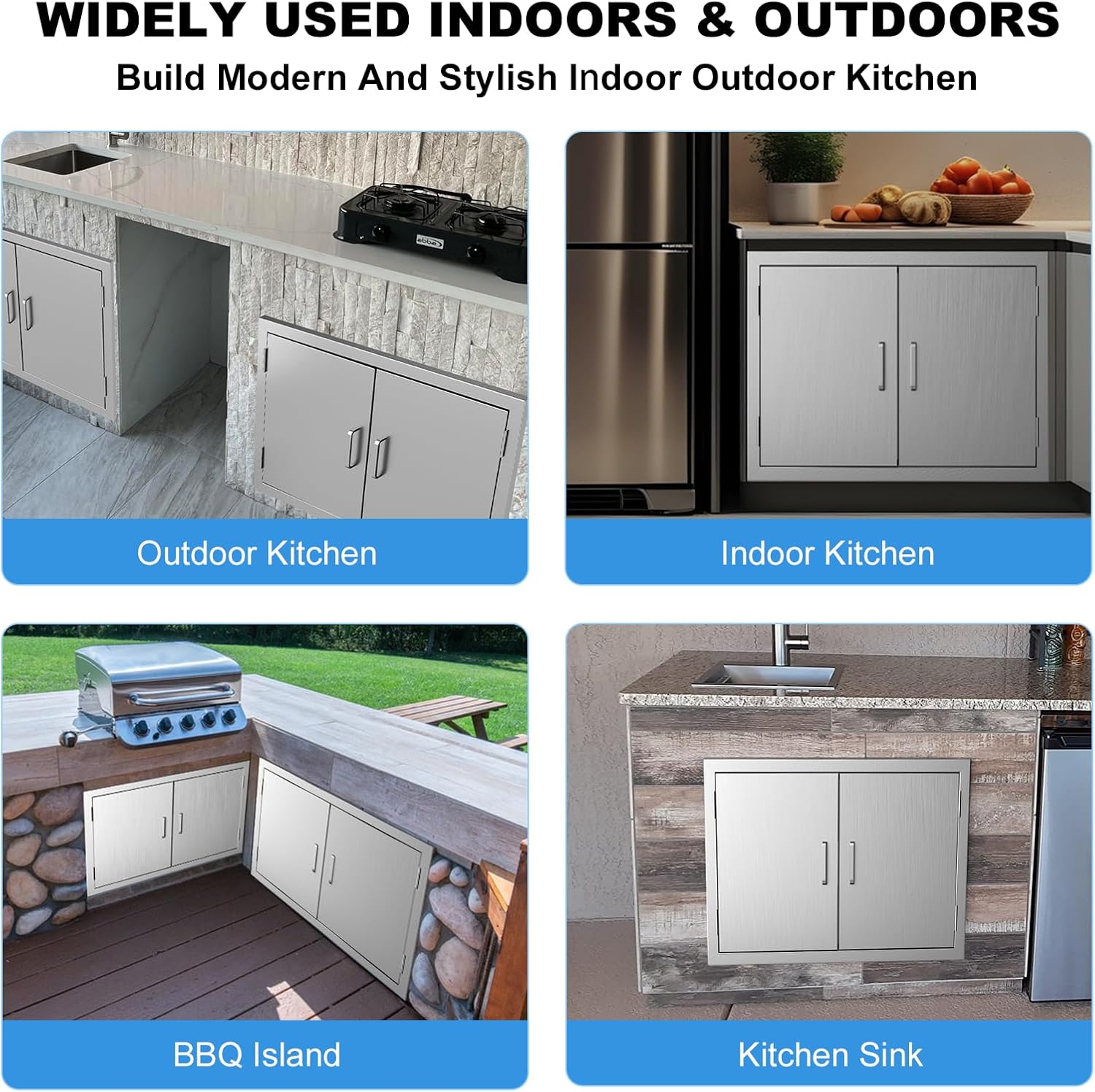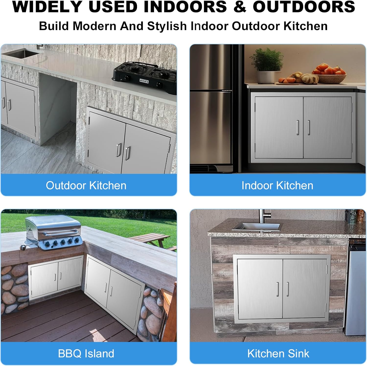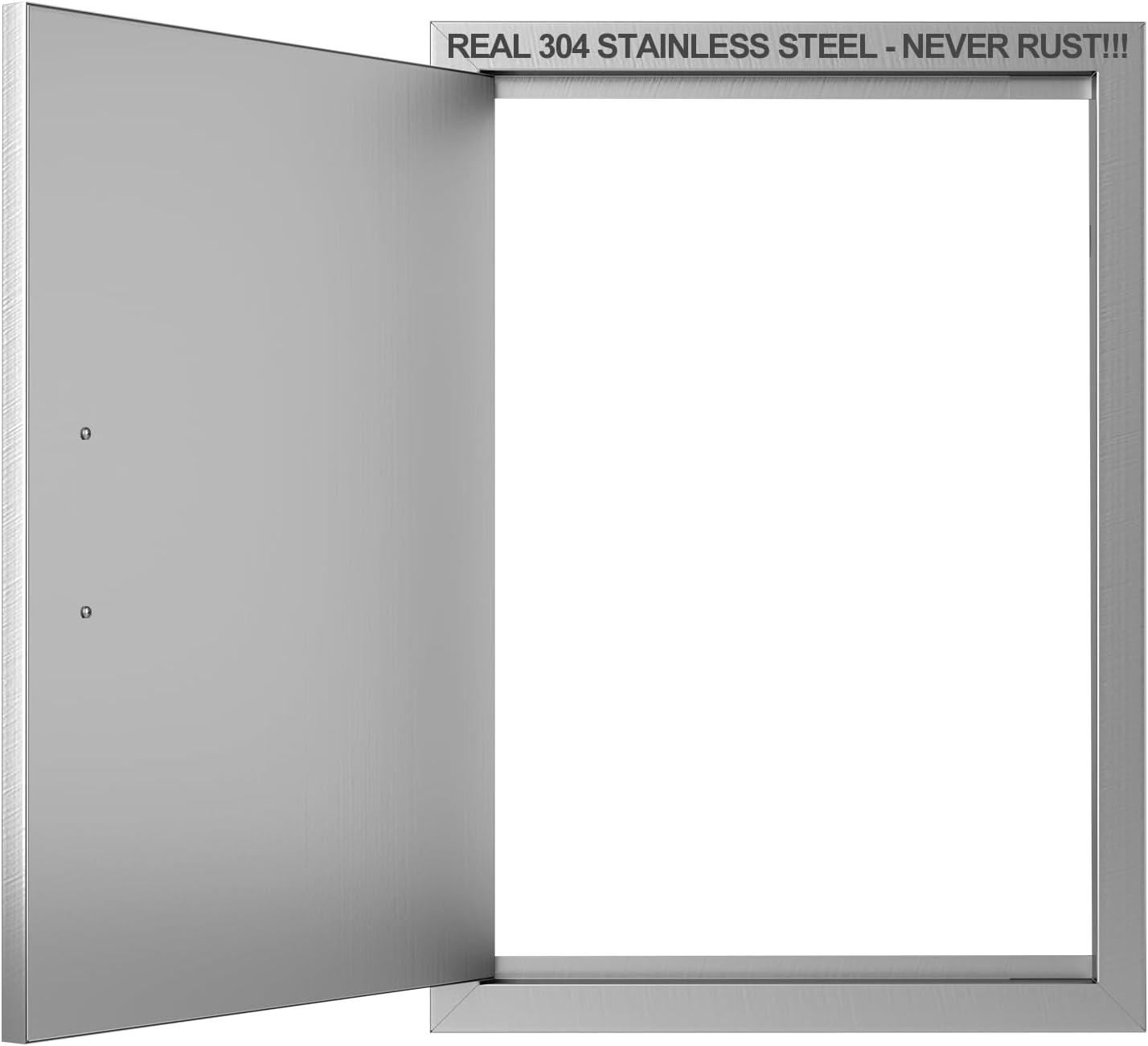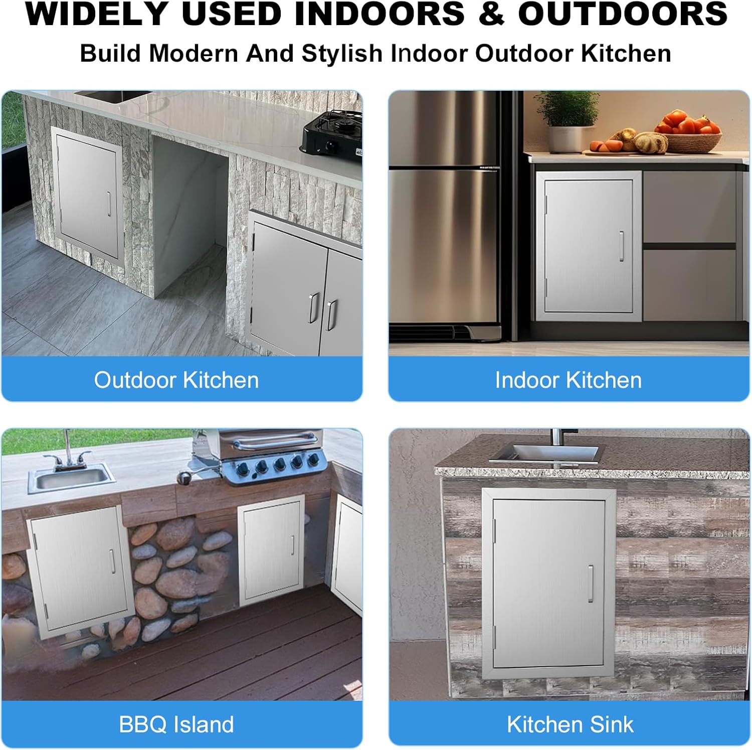 • WIDE APPLICATION--Our BBQ island doors are perfect for indoor and outdoor use, withstanding all weather conditions. Ideal for outdoor kitchens, BBQ islands, grilling stations, storage cabinets, and more. They also serve for electrical, plumbing, security systems, and sprinkler access, as well as fireplaces, sinks, electrical boxes, garbage cans, gas tanks, and car kitchens.