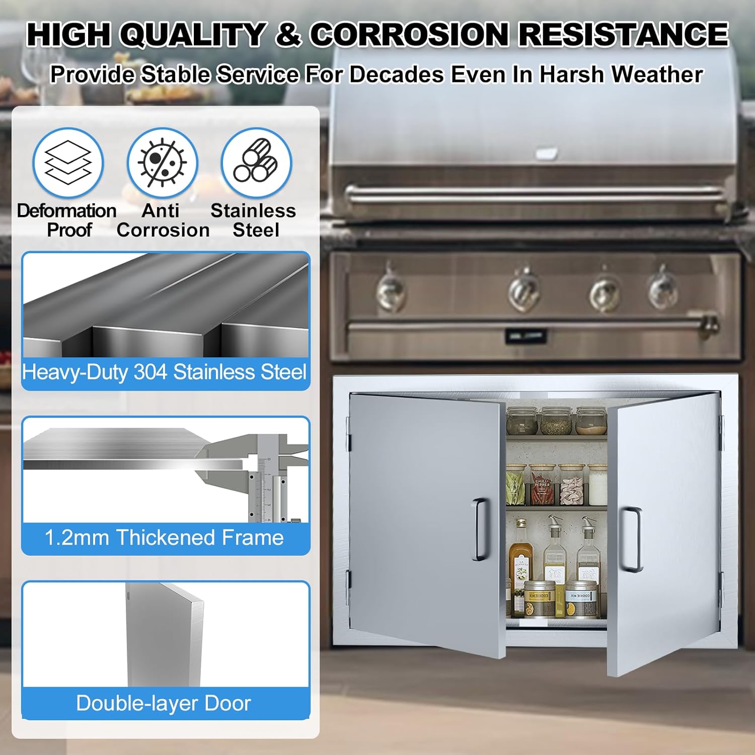 Outdoor Kitchen Door 31" W x 24" H-304 Stainless Steel Never Rust Cabinet Door-Double Layer-BBQ Access Doors-Weatherproof GrillDoor-Flush Mount BBQ Island Doors-MetalDoor for Outdoor Indoor Kitchen
