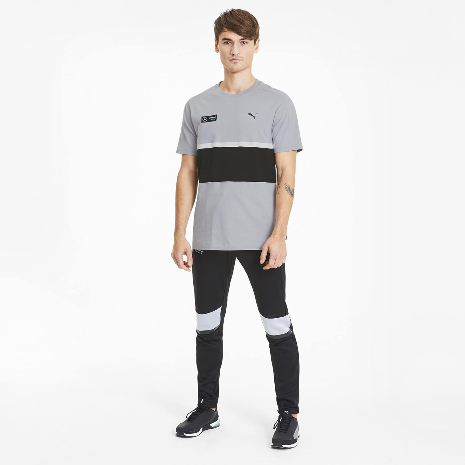 The mapm T7 Tee takes inspiration from PUMA's iconic T7 styles. A must-have for PUMA and MAPM fans! Mapm Logo print; PUMA cat logo print; MAPM back neck tape; contrast insert on the iconic PUMA T7 form stripe on wearer's sleeves; piping details. Dry cell