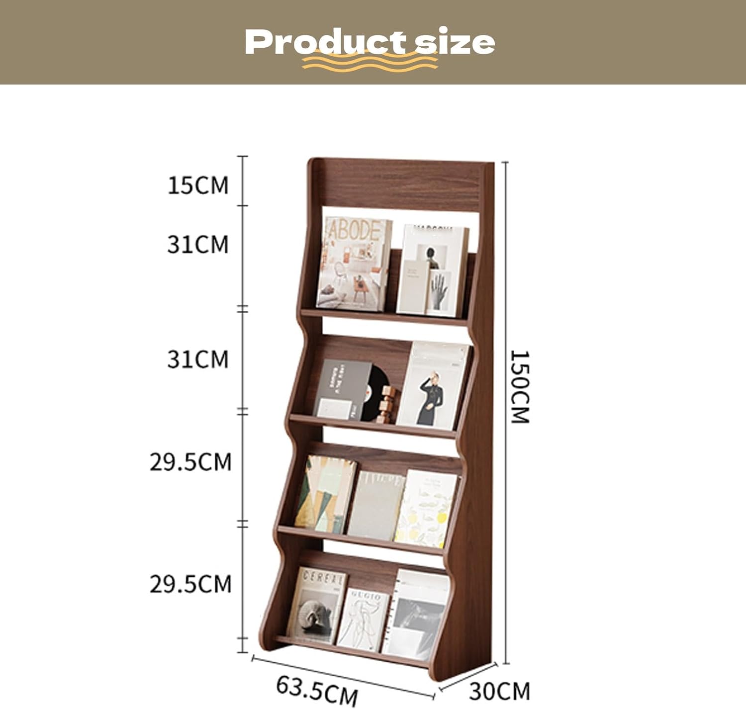 This magazine rack is very suitable for storing and displaying various magazines, documents, newspapers and books. It is suitable for various places such as living rooms, offices, libraries, exhibition halls, shopping malls, etc.Specifications:Product name: Magazine rackMaterial: Thick artificial boardSize: 63.5 x 63.5 x 30 x 150 cmProduct weight: Approximately 30 kgColor: Walnut, Log, WhiteStyle: ModernAssembly required: YesInstallation type: Floor-standingPackage contents:Magazine rack x 1