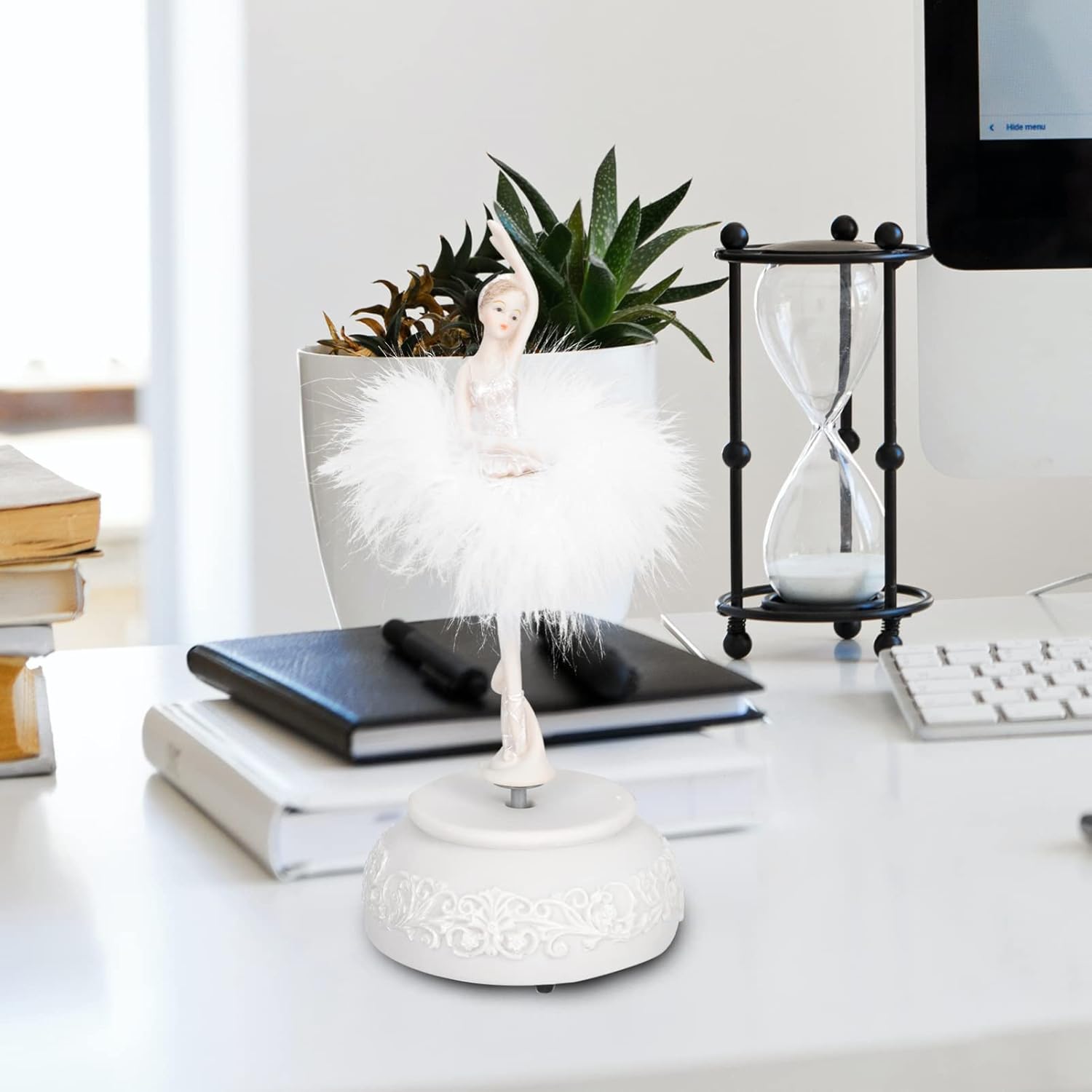 Description The creative music box is made of resin, , and can accompany you for a time. Color hand- painted, each is hand- painted the artist, with carvings and more refined details. Features- Material: Resin, Artificial Plume- Size: 22X10X10cm/ 8. 65X3. 93X3. 93in- Color: White Package Including 1 x Ballet Girl Musical Box